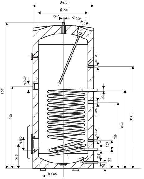 - Tároló és hőcserélő anyaga: zománcozott acél
