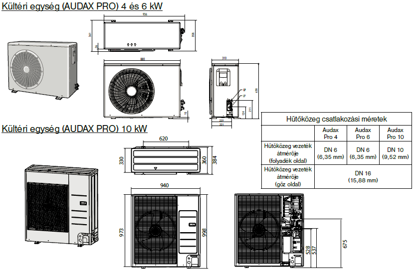 A kültéri egység főbb jellemzői (Audax Pro):