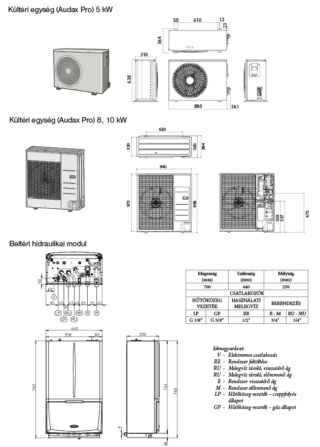 • 7,71 kW/3,75 Névleges fűtési teljesítmény/COP (35/30°C DT és 7°C külső hőm. mellett)