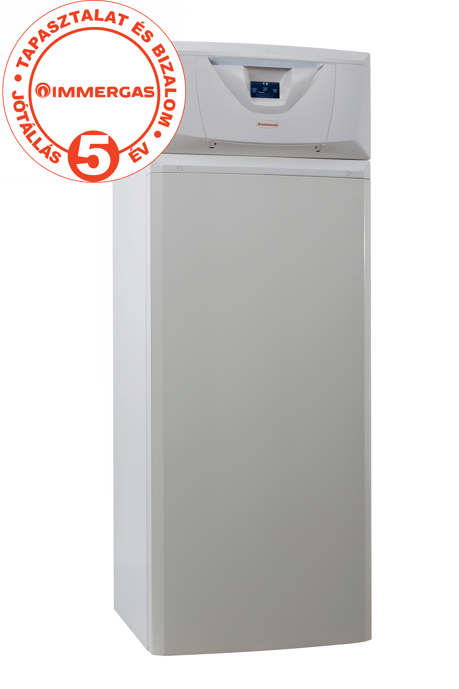 A nagyméretű kijelzőn a készülék számos információt közöl a felhasználóval. Megjeleníti a különböző működési jellemzőket, az aktuális funkciót (szivattyú utókeringtetés, égéstér szellőztetés, HMV készítés, stb.) vagy akár az üzemórák, gyújtások számát.