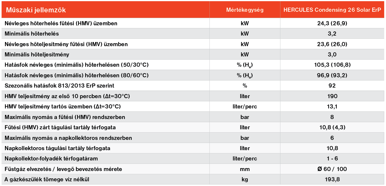 A HERCULES Solar egy 20 kW-os zárt égésterű, álló gázkészülék, beépített 200 literes rozsdamentes acélból készült használati meleg-víz tárolóval, amely két fűtő csőkígyóval van ellátva, melyből az egyik közvetlenül csatlakozik a gázkészülékben előkészített napkollektoros rendszerhez.