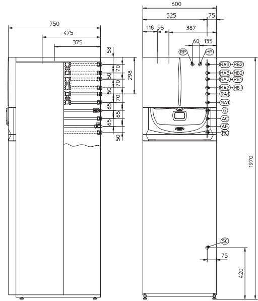 • 1970 / 600 / 750 Méret (mag/szél/mély)