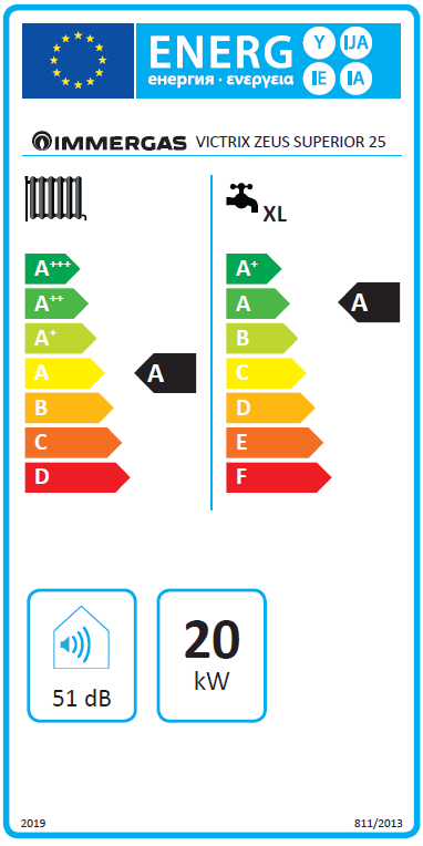 • 94% "A" kategória fűtés, "A" XL kategória HMV Szezonális hatásfok (2010/30/EU)